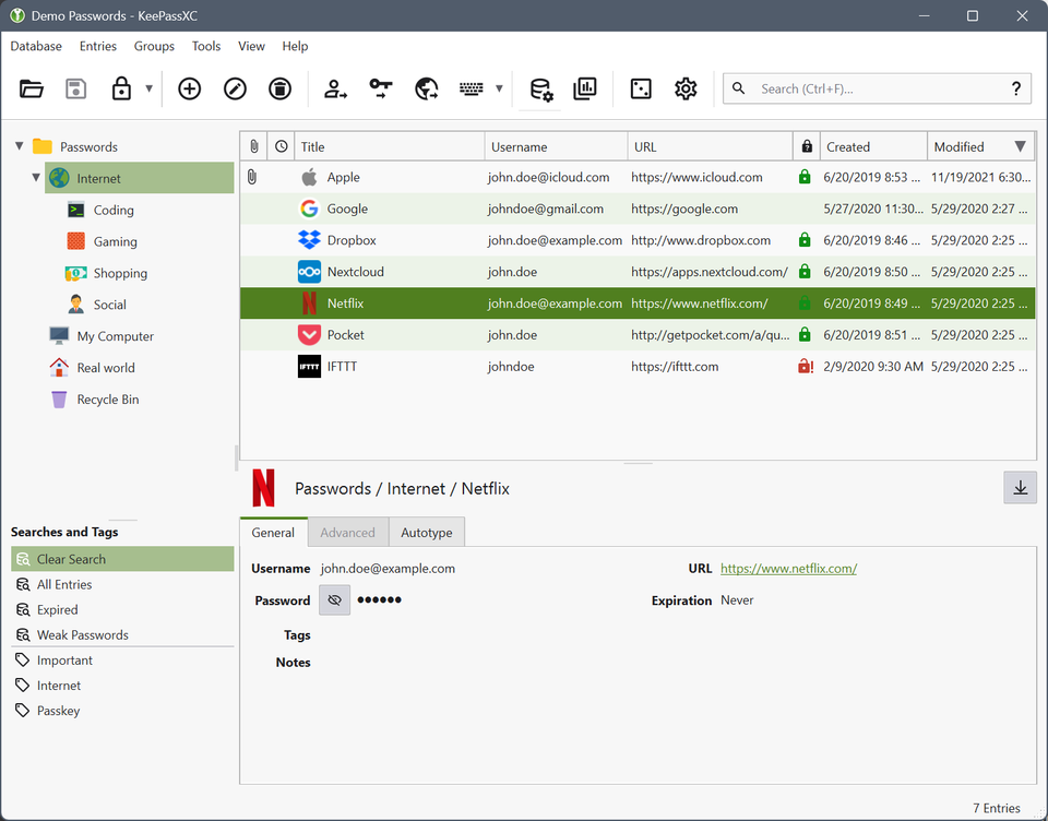 Allt här ovan, i det senaste stycket, är inte det bästa alternativet. Nu rekommenderar jag istället starkt att du börjar använda ett speciellt lösenordshanteringsprogram, för att alltså hantera alla dina (olika) lösenord. Själv har jag valt gratis- och open source-programmet KeePassXC och du kan läsa mer om det och om hur man använder det i ett inlägg på min blogg (med instruktionsvideo). Inlägget där har dock några år på nacken och handlar om föregångaren KeePass (utan XC). Instruktionerna är dock desamma för båda programmen.