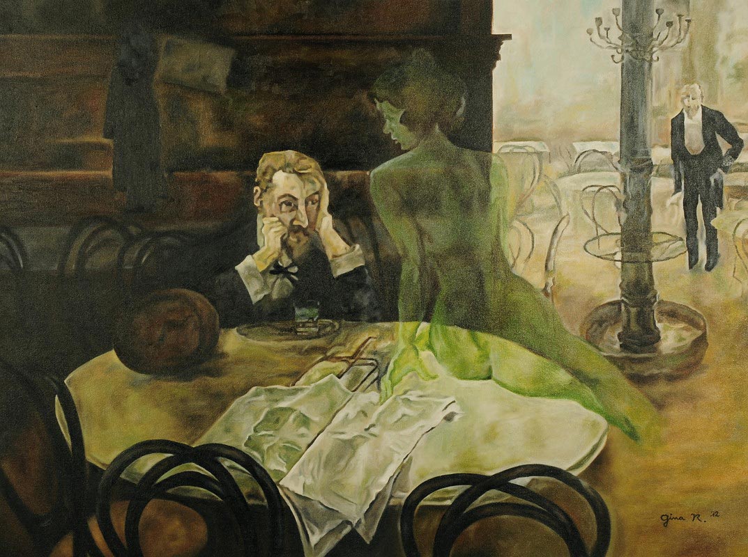 Frågan är dock om man inte kan skylla åtminstone en del konstnärer och författare under la belle époque för att ha bidragit till att mystifiera absint? Ett begrepp som kommer från den tiden är ju till exempel den gröna fen (la fee verte) som ett smeknamn (eller öknamn) på absint. Det namnet antyder i korthet att en grön fe, eller kanske någon form av överjordisk inspirerande musa, kan uppenbara sig för dem som dricker absint. Det ligger alltså hyfsat nära tillhands att säga att absinten skulle ha mer eller mindre hallucinogena egenskaper, även om man får anta att det kanske snarare var ett uttryck av konstnärlig frihet. Två ganska kända målningar från den tiden visar hur absintören (l'absintheur) ansätts eller uppvaktas av denna gröna fe.