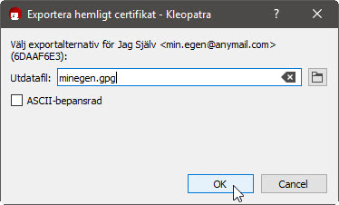 Sådär. Då är du klar för att kunna ta emot och även skicka krypterat.